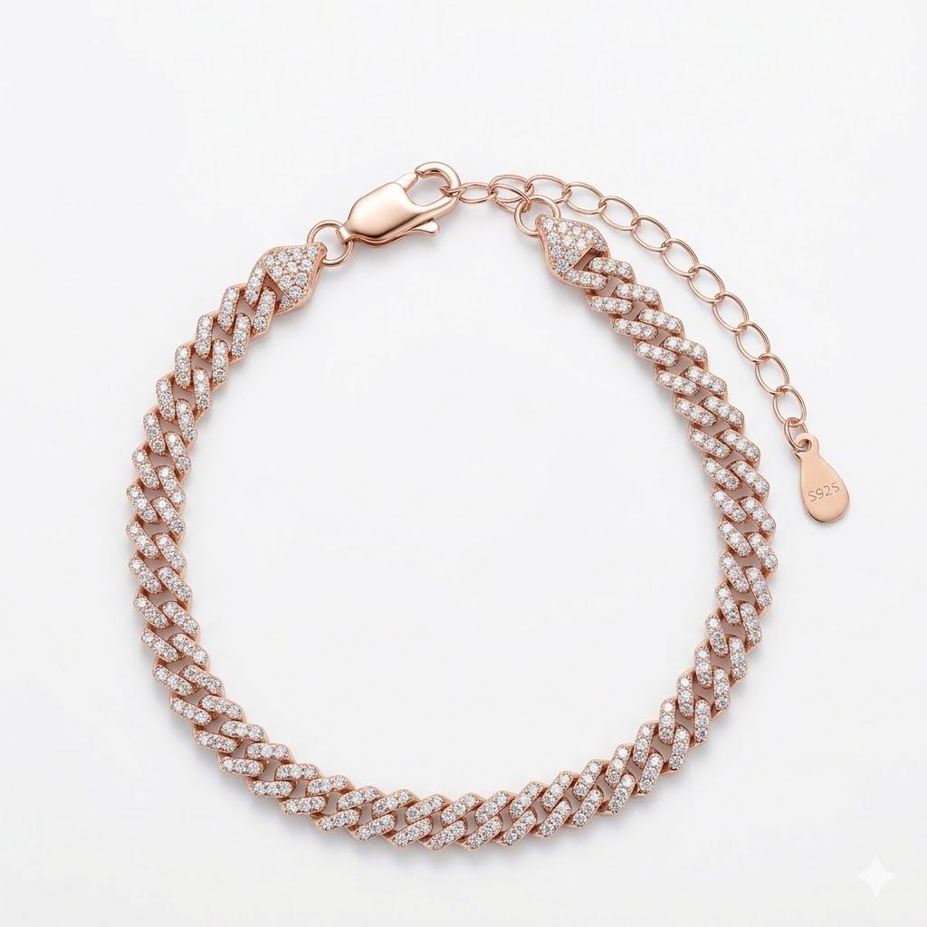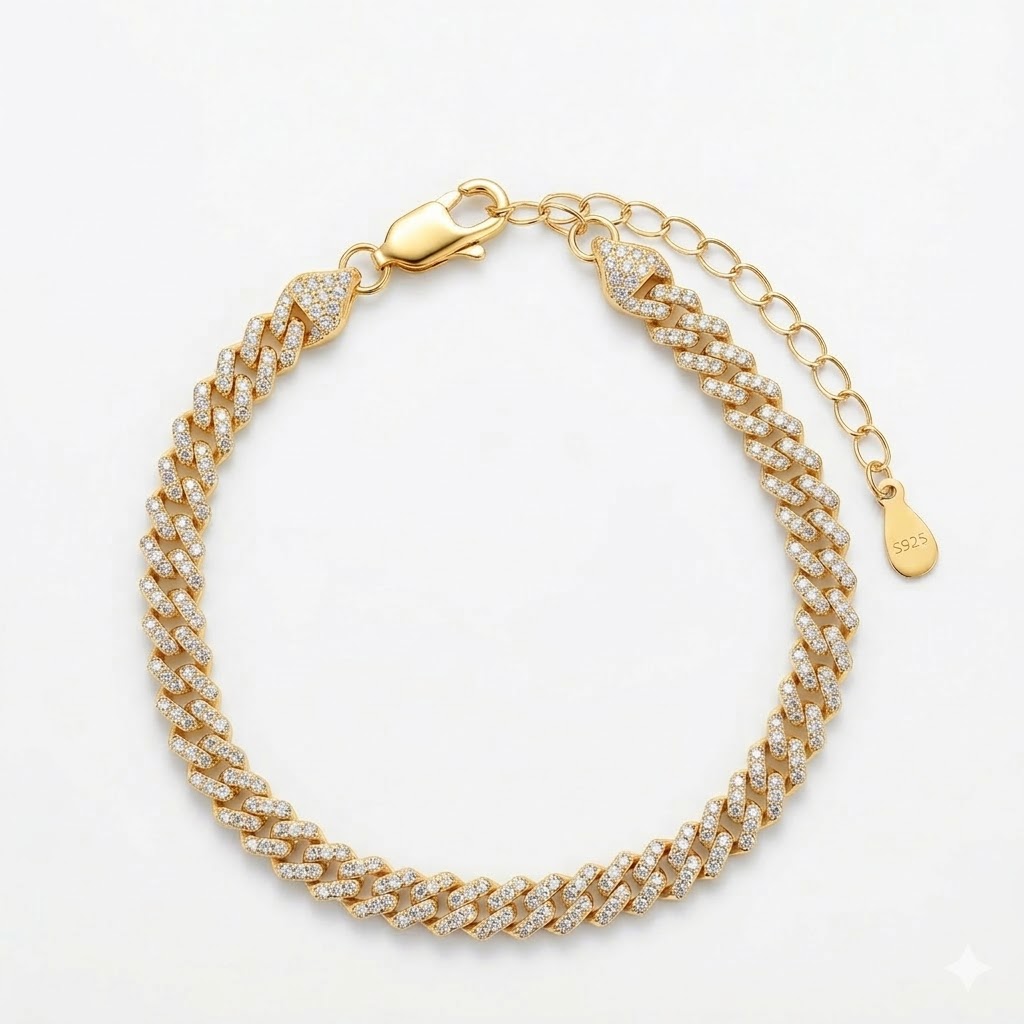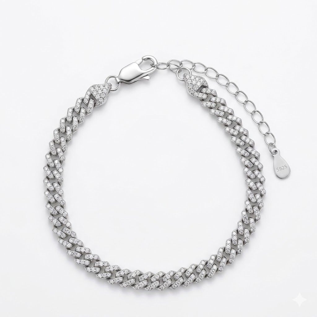 צמיד קובני המוכר והאהוב, עשוי כסף טהור 925 ומשובץ אבני זירקוניה 5A. הדרגה הגבוהה ביותר של אבני זירקוניה – לרמת נצנוץ מקסימלית ומראה נקי ויוקרתי.